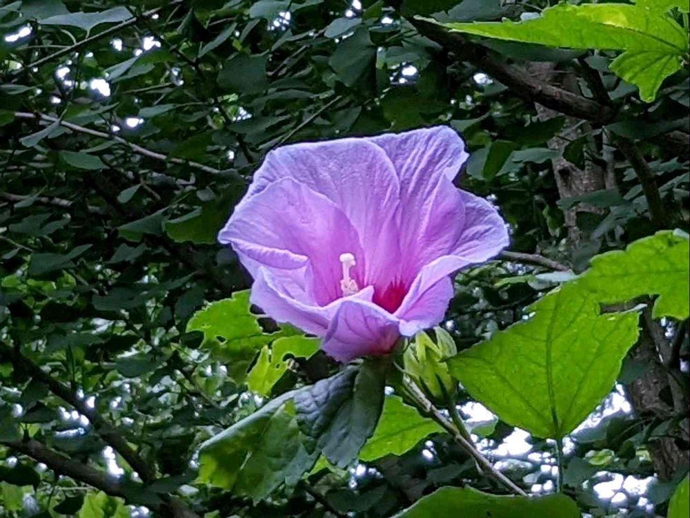 前投稿の更に奥の木槿…ブルーバード… 青味がかったビンク?…写真だともっとピンク…😅