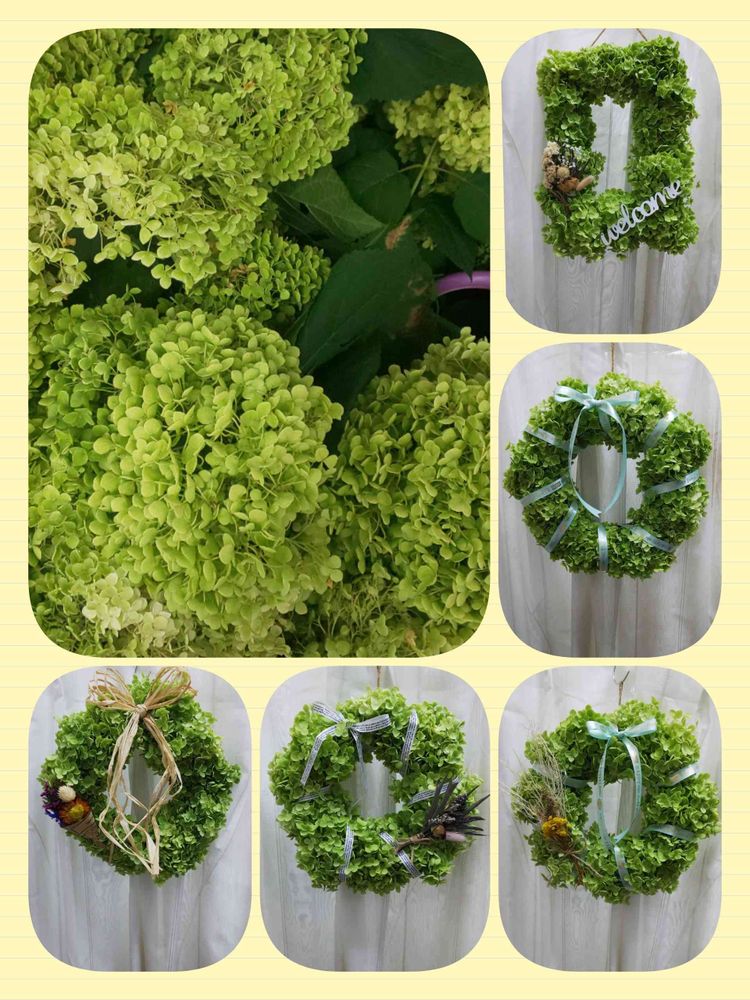 今年もご近所さんからアナベルをいただき母がリースに💚