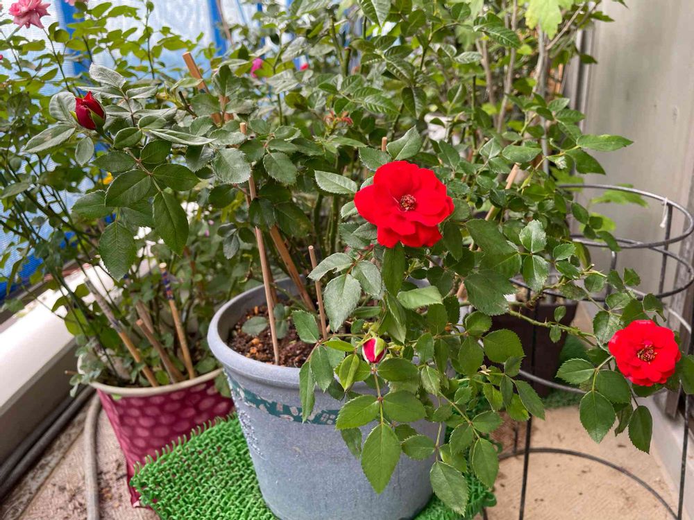 強風のベランダで、バラは負けない‼️嬉しくってバラ鉢だらけになっちゃいました💕品種不明のバラばかりなので鉢に名前をつけてます✌️ 2020年4月からバラ生活が始まり、GSは5月末から参加しました。みなさんからいろんな植物の話が見聞き&おしゃべりできてとっても楽しいです。ありがとぉです💕どうぞよろしくです。