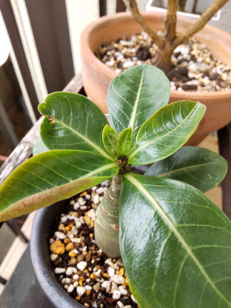 うちにはアデニウムが2つおり、このアラビカムの後、6月にお迎えした接ぎ木オベスムを隣に置いてますが、そちらは絶好調です。