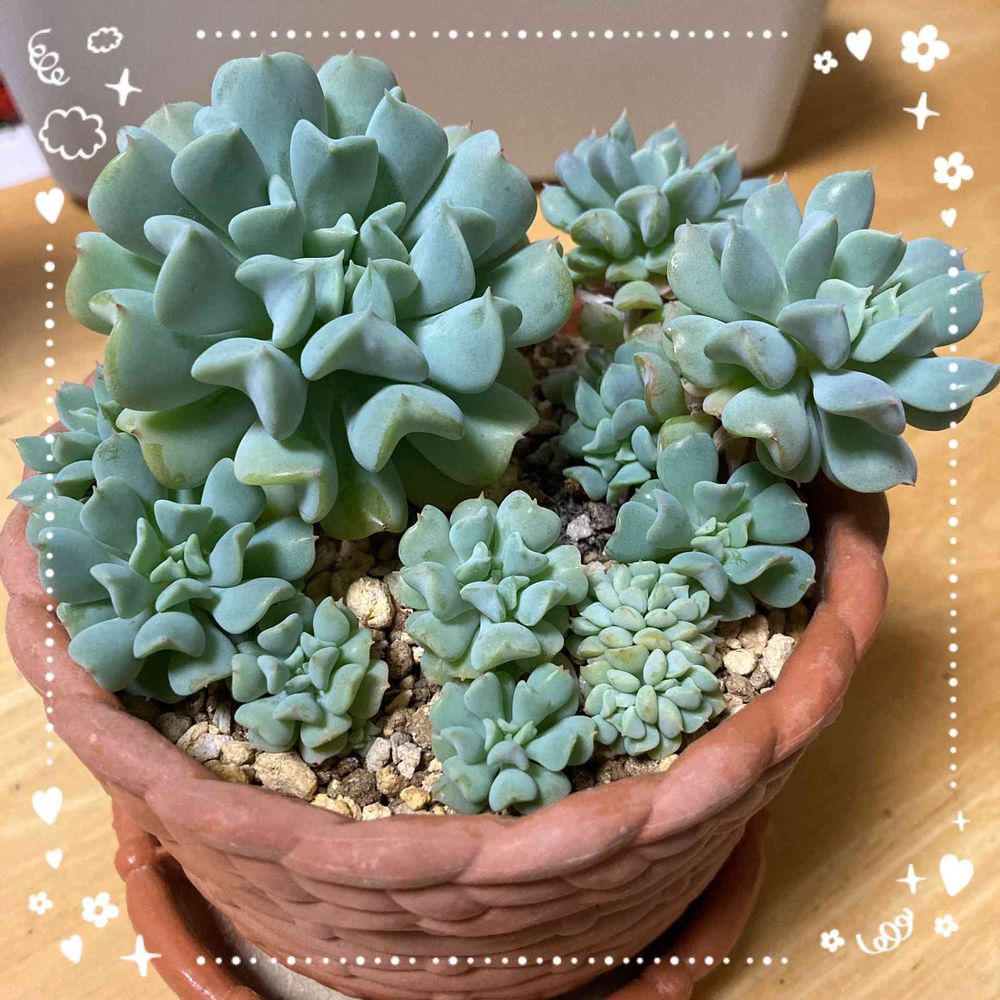 右側の中位のが子株を分離した子供達。3人姉妹だったけどどれが3人目かわからなくなってる💦