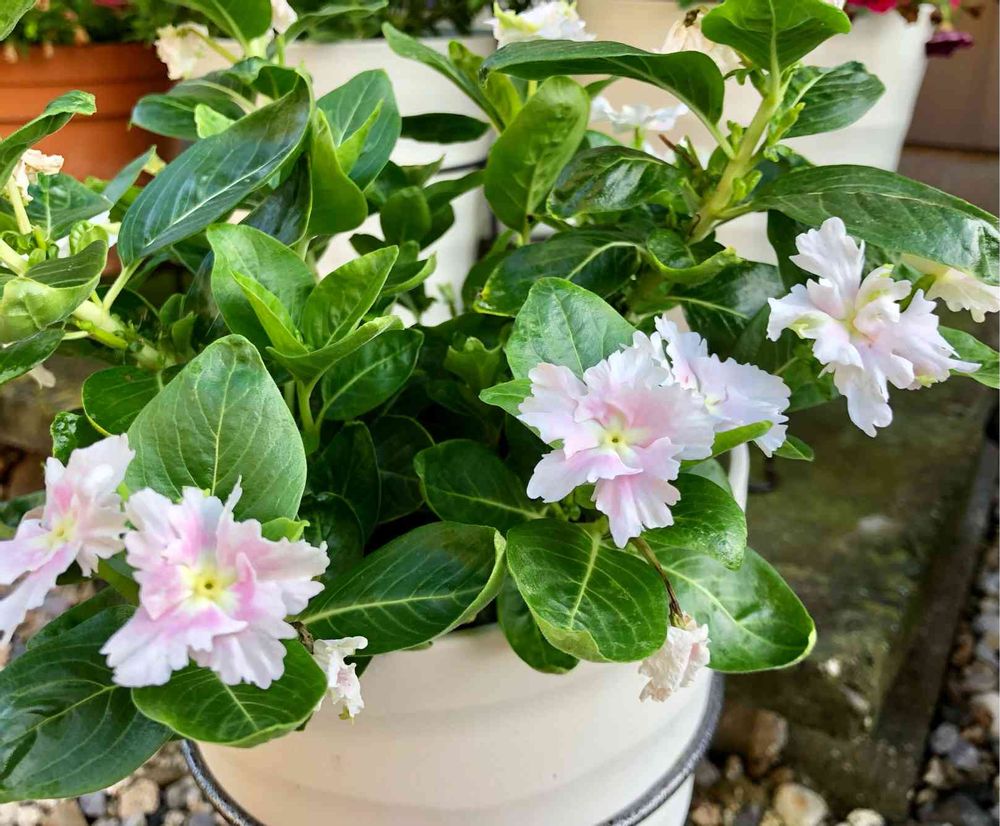 初めてのニチニチソウ 優しいピンクの花びらにギザギザが入ってとっても可愛いですね☺️💕