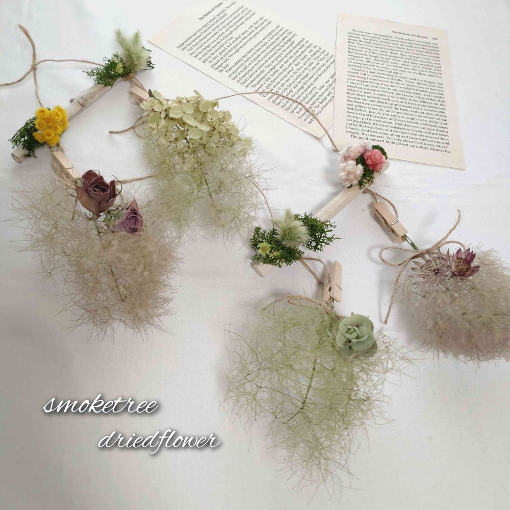 ポロっと取れた小さなスモークツリーもこんなふうにミニスワッグにすると可愛いなぁ😃