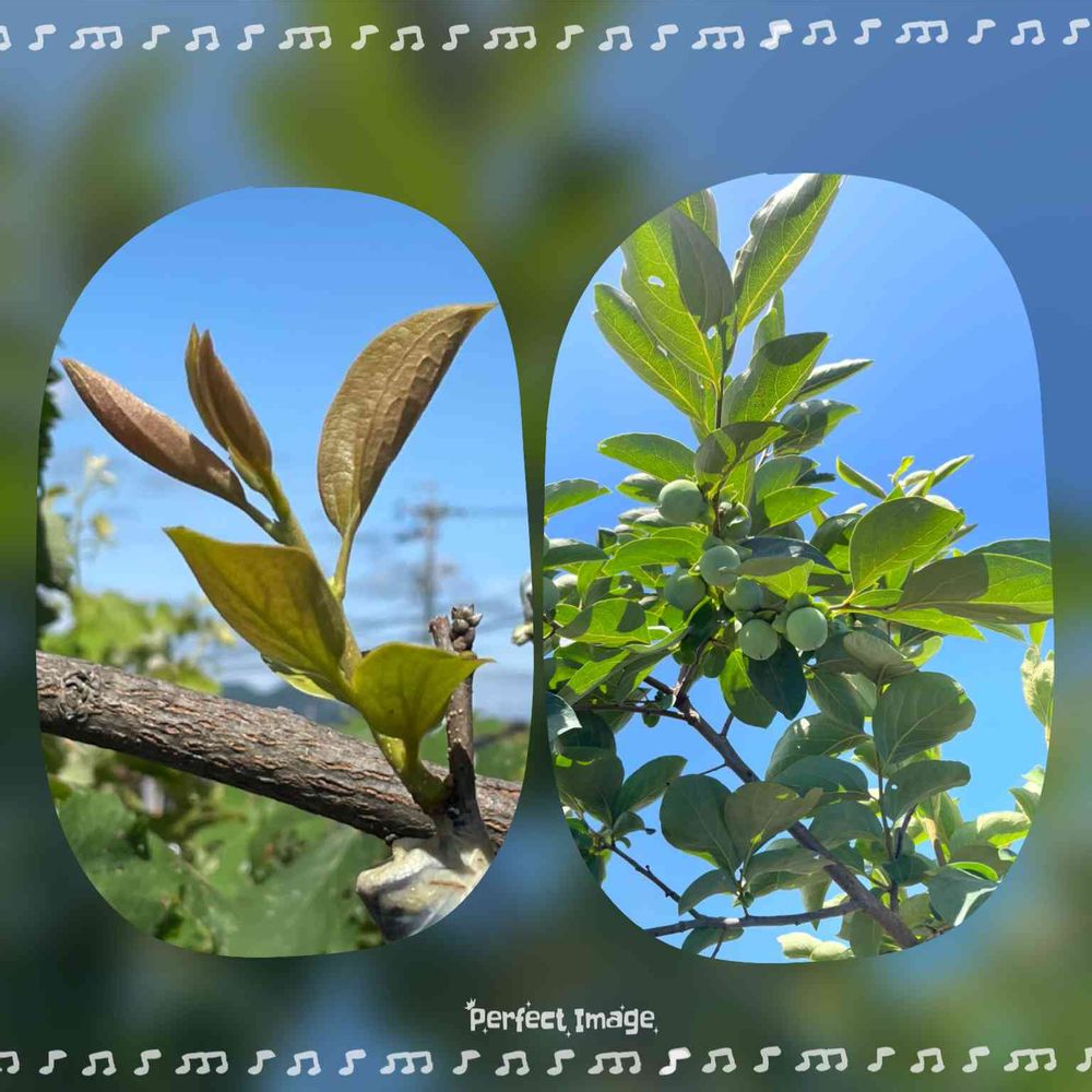 渋柿に接木した枝から新芽🌱が出て来て、少しずつ伸びていますー‼️😊🙏
