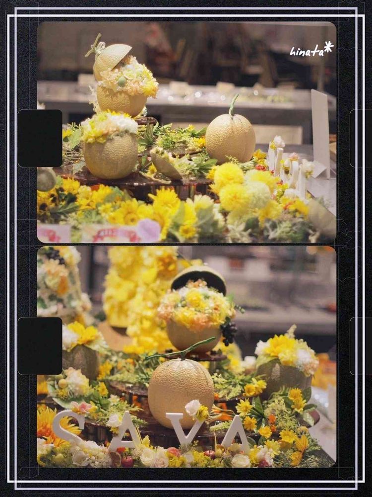 向こう側のガラスのシヨーケース にまるでジュエリーのように色んな種類のデザートが並んでます。メロンがとにかく美味しくて…何個食べたかわかりません😆