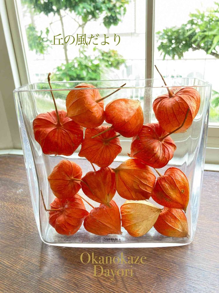つい先日うちのドライのホオズキをどうしようか迷い、一旦タッパーに入れて片付けました。が、こんな素敵な飾り方もあるんですねー。目から鱗です。お写真も綺麗✨ ぜひフォローさせて下さい🍀