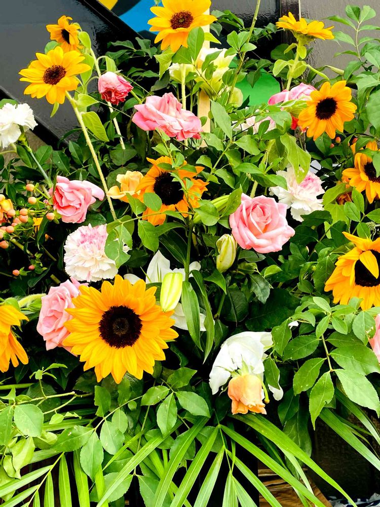 ヒマワリ🌻、バラ🌹カーネーション、ヒペリカムなど…
