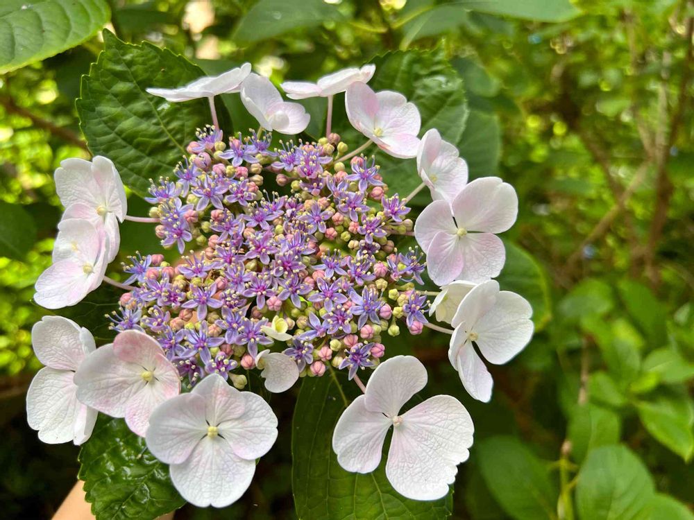 お名前がわからないのが残念なんですけど💦カラーといい✨両性花といい✨ガクのほんのりピンクもかわいくって♡♡♡