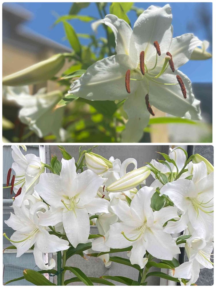 おしべある方が百合らしくてカッコいいんだけど、花粉で白い花びらがすぐ汚くなるでしょう😆