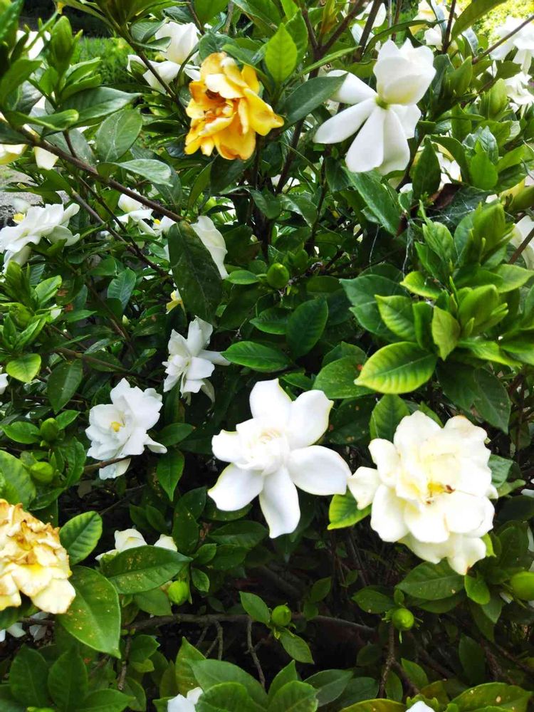 「クチナシ」の花、一輪咲くのはゆっくり鑑賞はしてました🐌💨💨朝👀一気に咲いてました。🤔あっ!〰️昨日見てないね😅