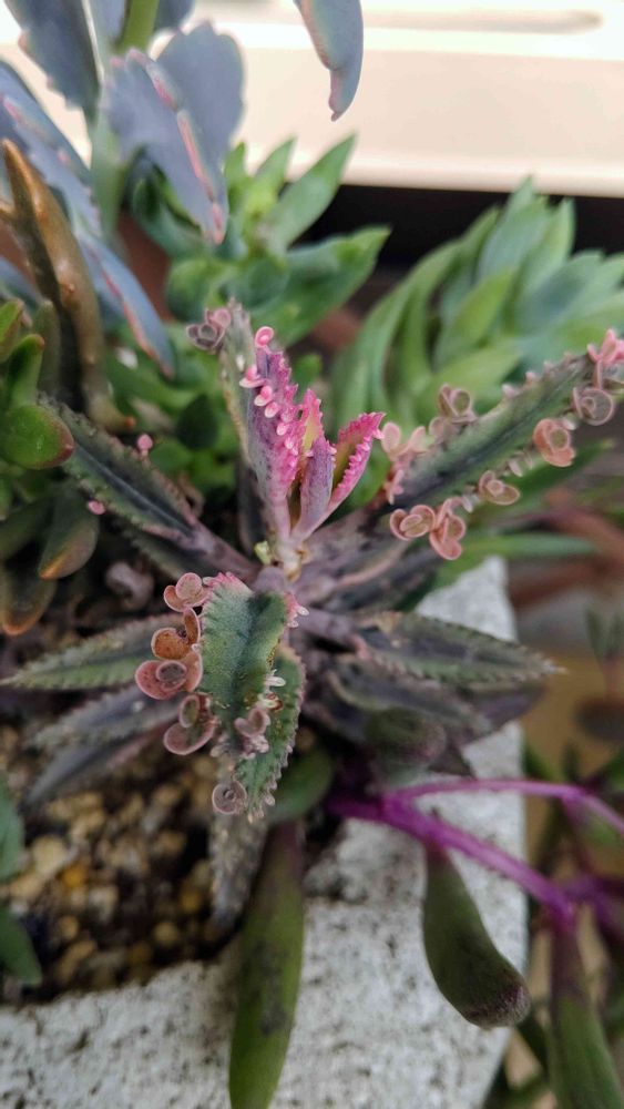 お花のように見えるけどお花じゃないんです。紅葉ぽくなってます。葉と言うのかなんなのか(笑)そこのフチに付いてるつぶつぶが ポロっと土の上に落ちて それから根が出て増えるそうですよ~🤣不思議な植物ですね😲