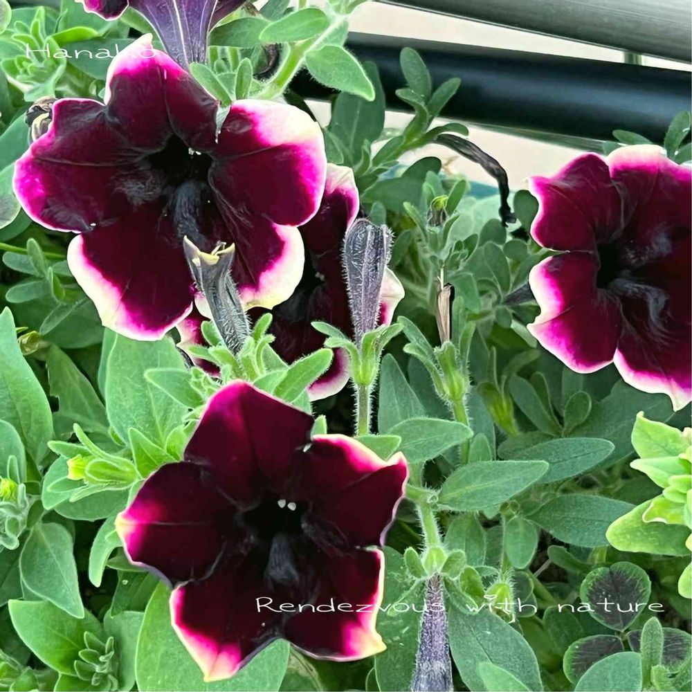 今日も素敵な花をありがとうございます😊。ボルドー色のペチュニアは初めて見ました。シックでいいですね。💕💕