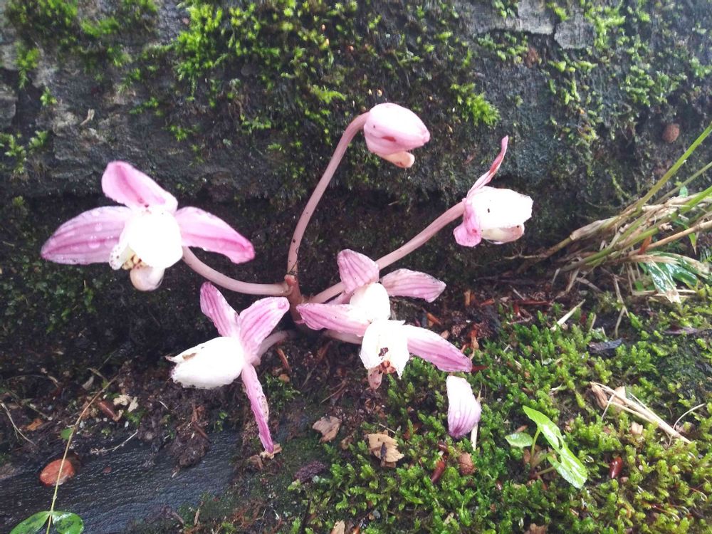 さん、地面から茎?が一本生えて、そこから枝分かれして、その先に花が咲いてるようです。葉はありませんでした😲山を歩いてたら、管理人さんが教えてくれました。
