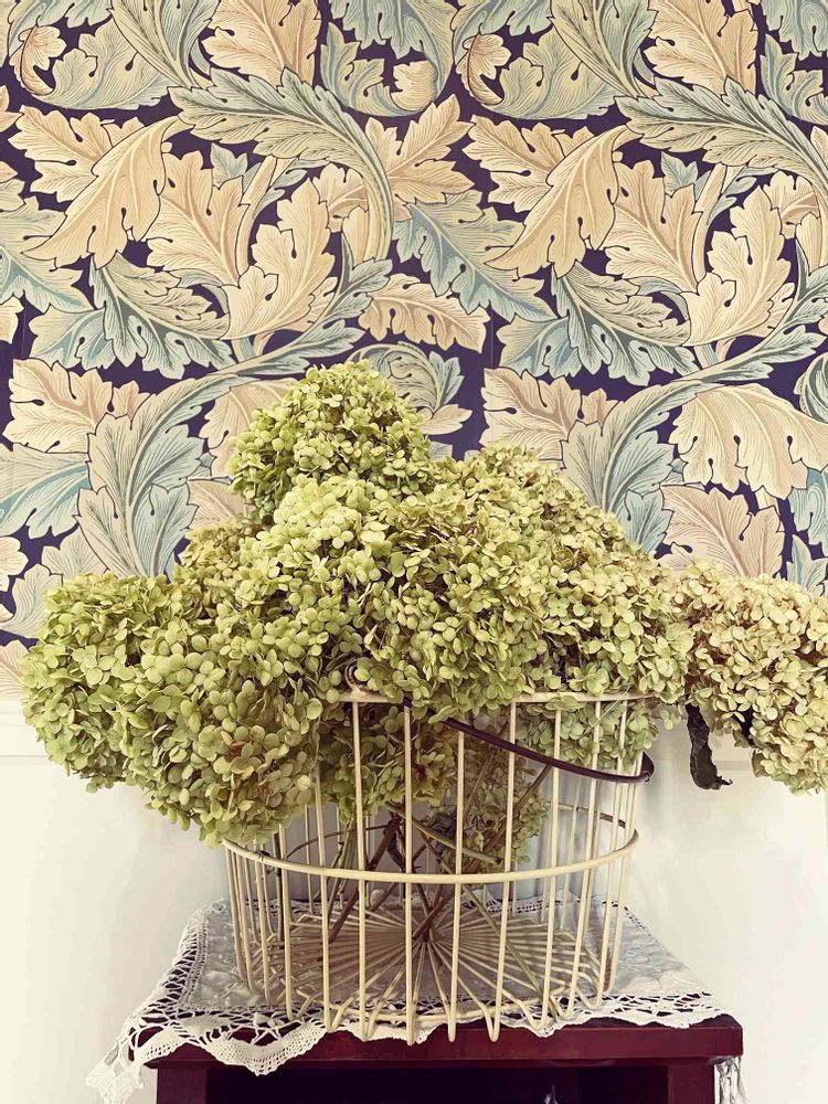さん、凄い〜自分で貼ったの!趣味豊かですね、調度品も鉢もこだわりと好みが個性的〜ウイリアムモリスは好きですがお高いの💸と周りに売られてないので未だ手に入りません~コピーでも💴結構しますね😅