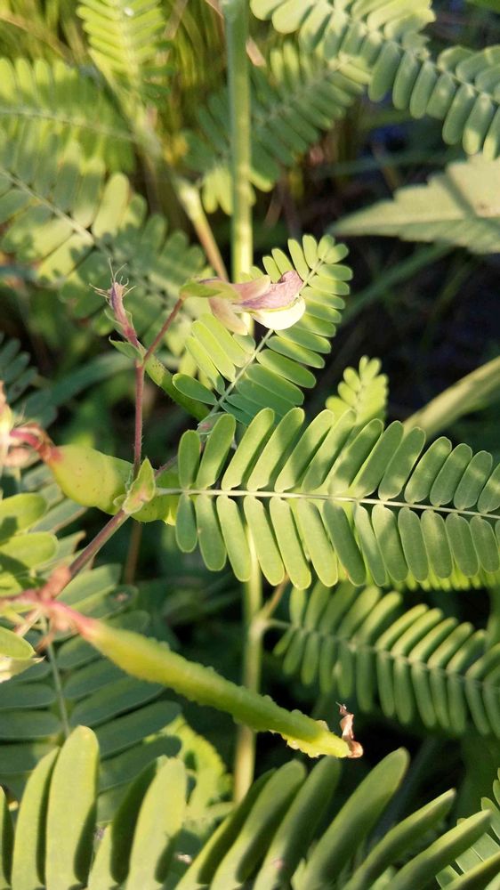 近くに紅い花のネムノキが生えていたから、種が飛んで田んぼに育ったのかとおもったらお花が違う😲🤭豆の花!