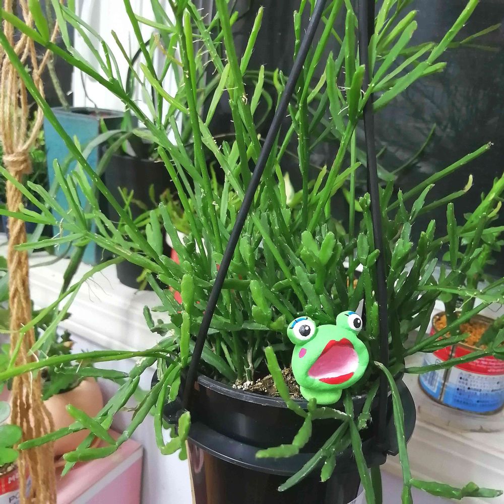 元気でてよかったです。リプサリスのお花の付き方で名前がわかりそうですね。ケロ子ちゃんのインパクト大