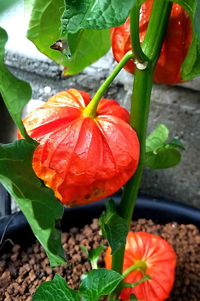 庭の鉢植えのホオズキ(鬼灯) 🎐 😳 🏮🕯🏮🕯🏮