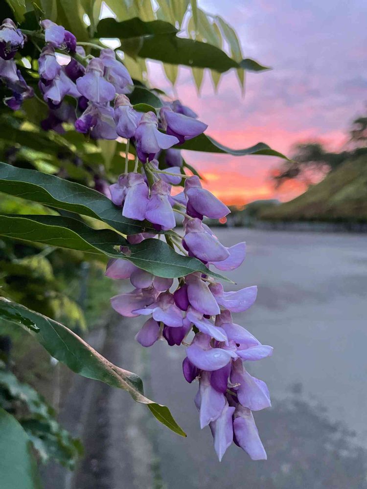朝焼けと藤〜💜