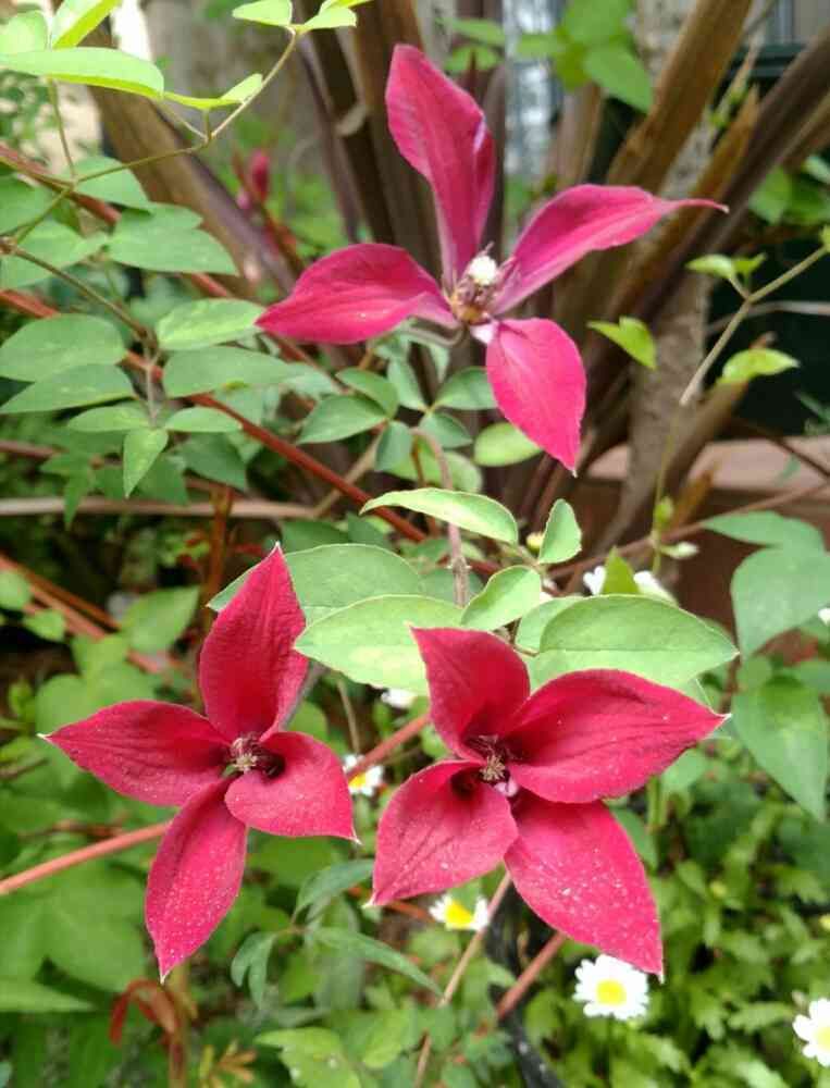 小さな庭,クレマチス グレーブタイ ビューティー,赤い花の投稿画像