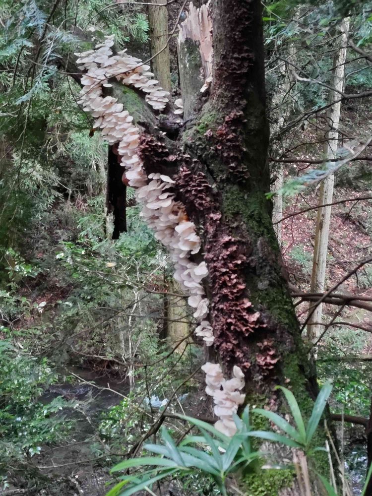 この時期にキノコの群生がみれました。みた目が美味しそう(調べてないですが)でしたが足場が悪く危ないので(暑いし)ピックだけに‥
