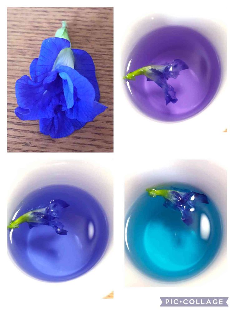 レモンで青い色水から紫色になる、不思議な植物にハマってしまいました👍