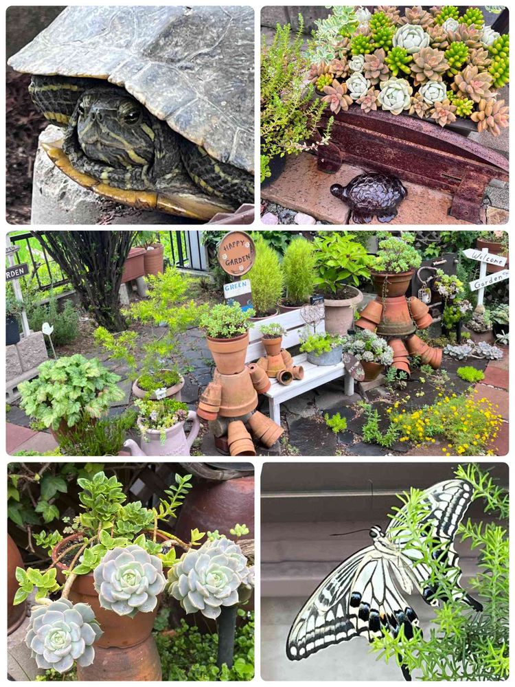 アゲハから🐢亀さんまでやってくるんだ左上のは一瞬何かと思いましたよ👀😅