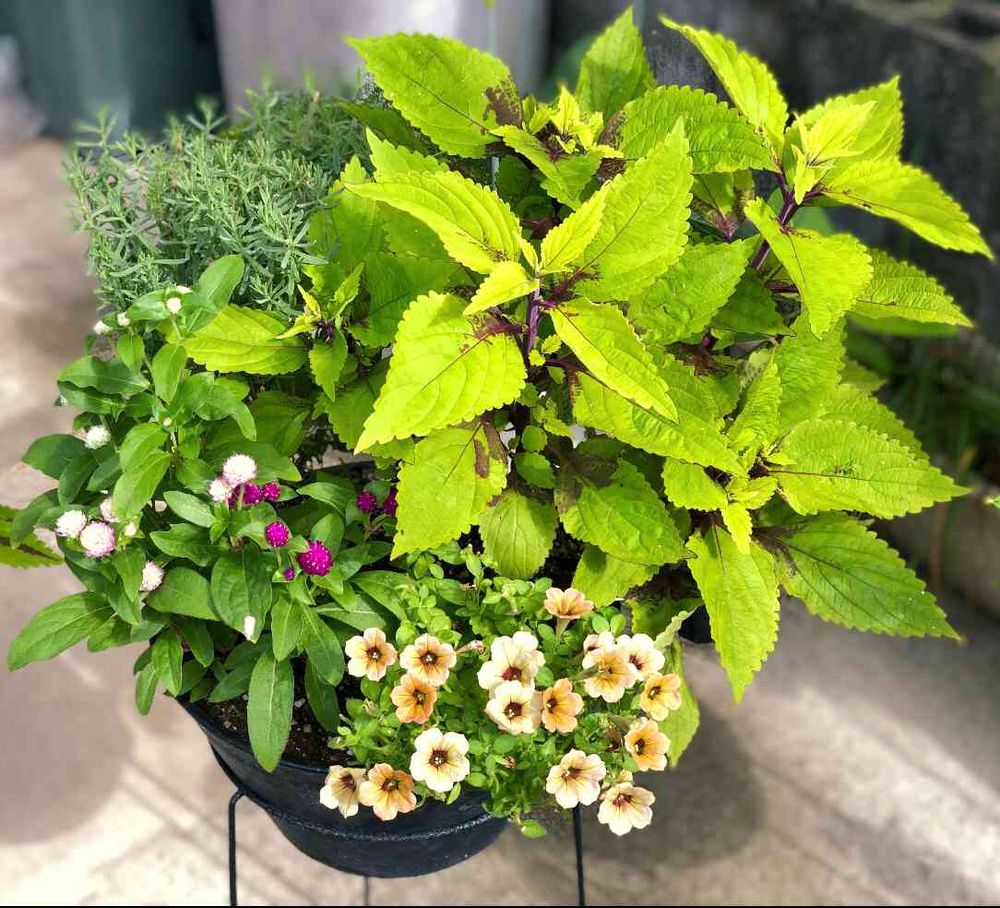 ペチュニアの色合いが少し薄くなったので、千日紅を合わせてみました💜
