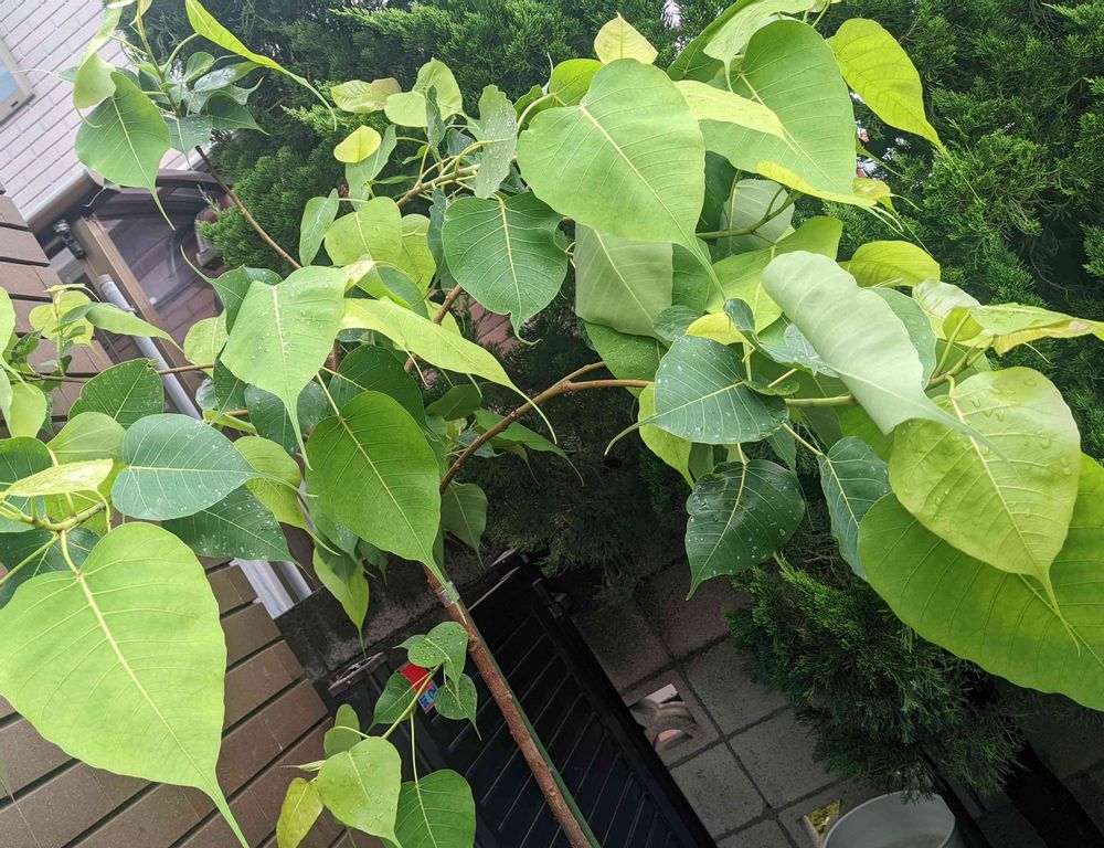 しばらく雨が続いたから?インド菩提樹の様子が変わってるΣ(ŎдŎ|||)ノノ