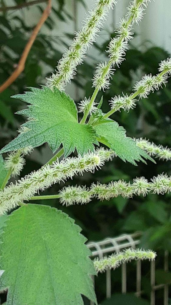 フェンスを乗り越えてくる邪魔者なんだけど、よく見ると白くてモコモコした花が…