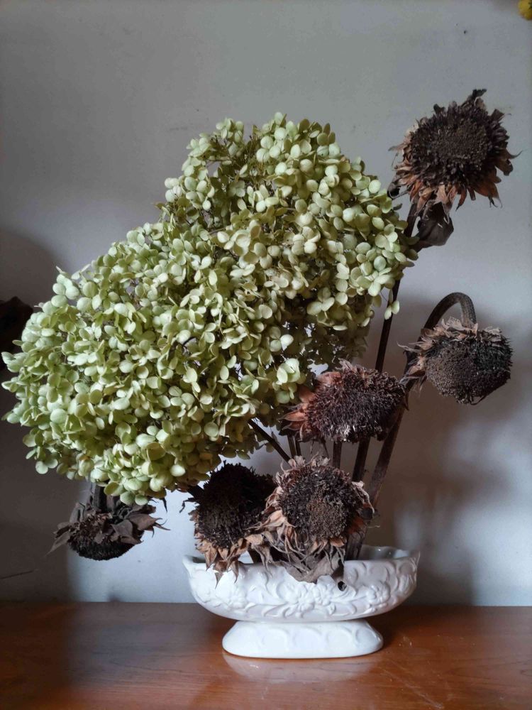 いや〜〜〜恥ずかしいです😆!❢遊び心で、真っ黒クロスケですが、小さめなので、可愛いかな😉と、アナベル飾ってる所に、挿してみました!。下駄箱の上です💓