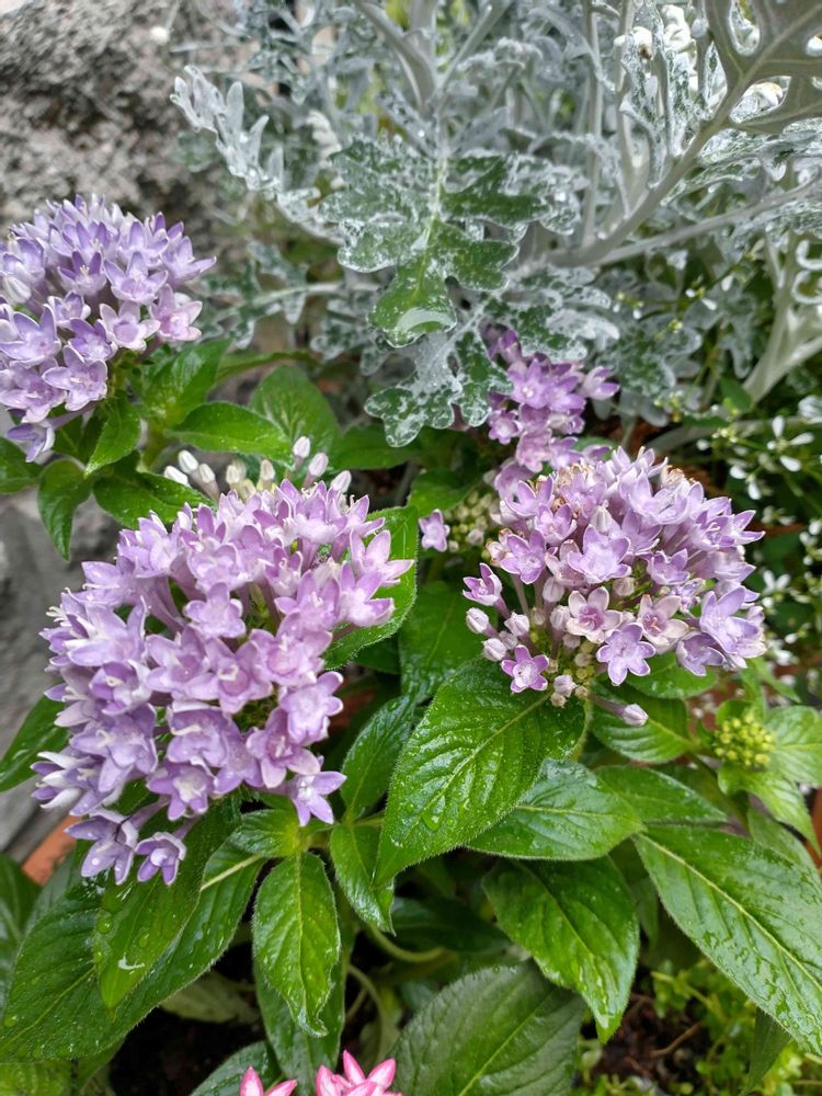 ペンタスの横にあるシロタエギク寄せ植え見たいな顔して映っているけど、