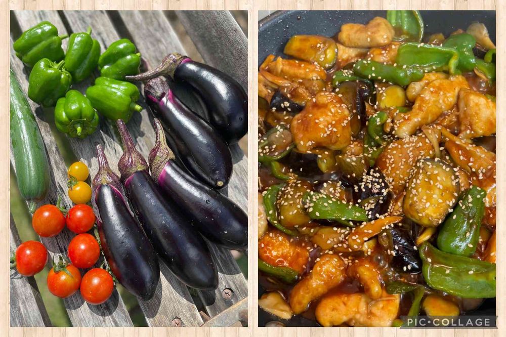 ナスやピーマンがたくさん採れたので、片栗粉をまぶした鶏胸肉と甘辛〜く炒めて1品に。コチュジャンや豆板醤多めで暑い日はピリ辛のおかずが進む〜💕