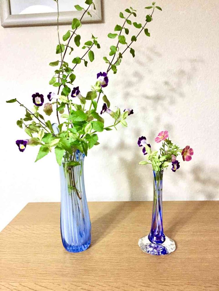 当時育てていたトレニアとチェリーセージのグリーンを水挿しにしました💙