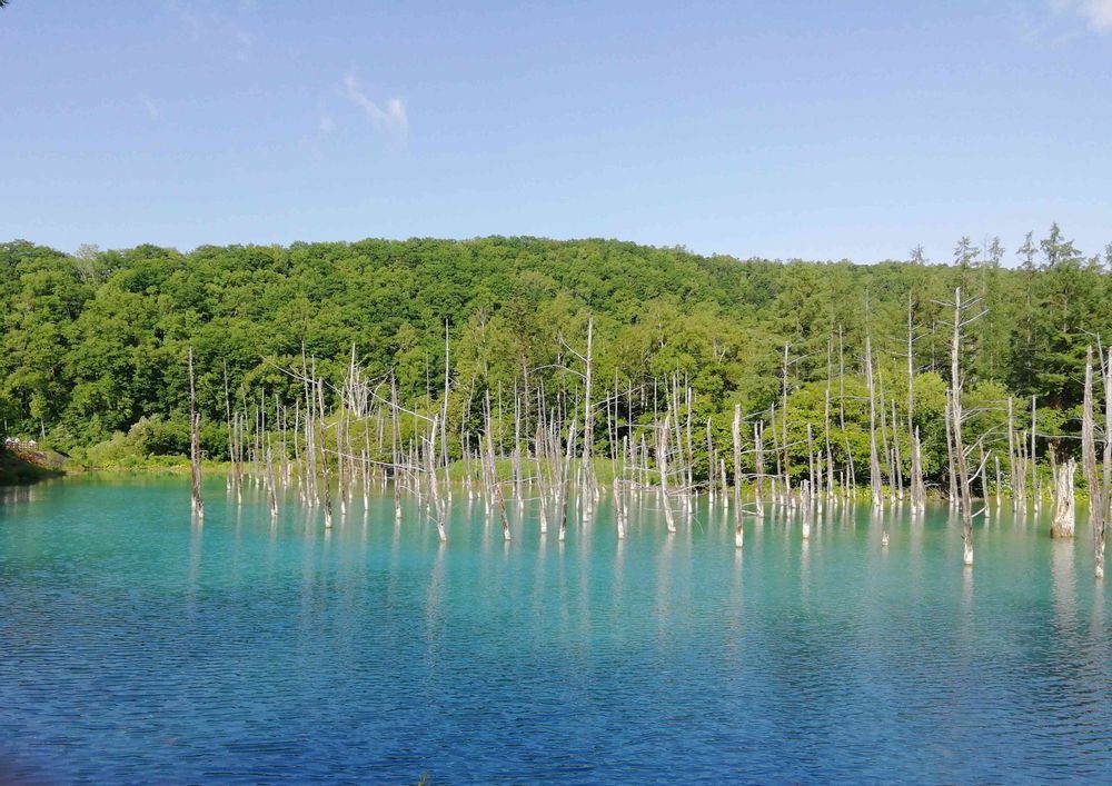 青が綺麗ですね‼️池から出ている木は白樺⁉️それがまた素敵💕夏の北海道って感じです✨✨✨