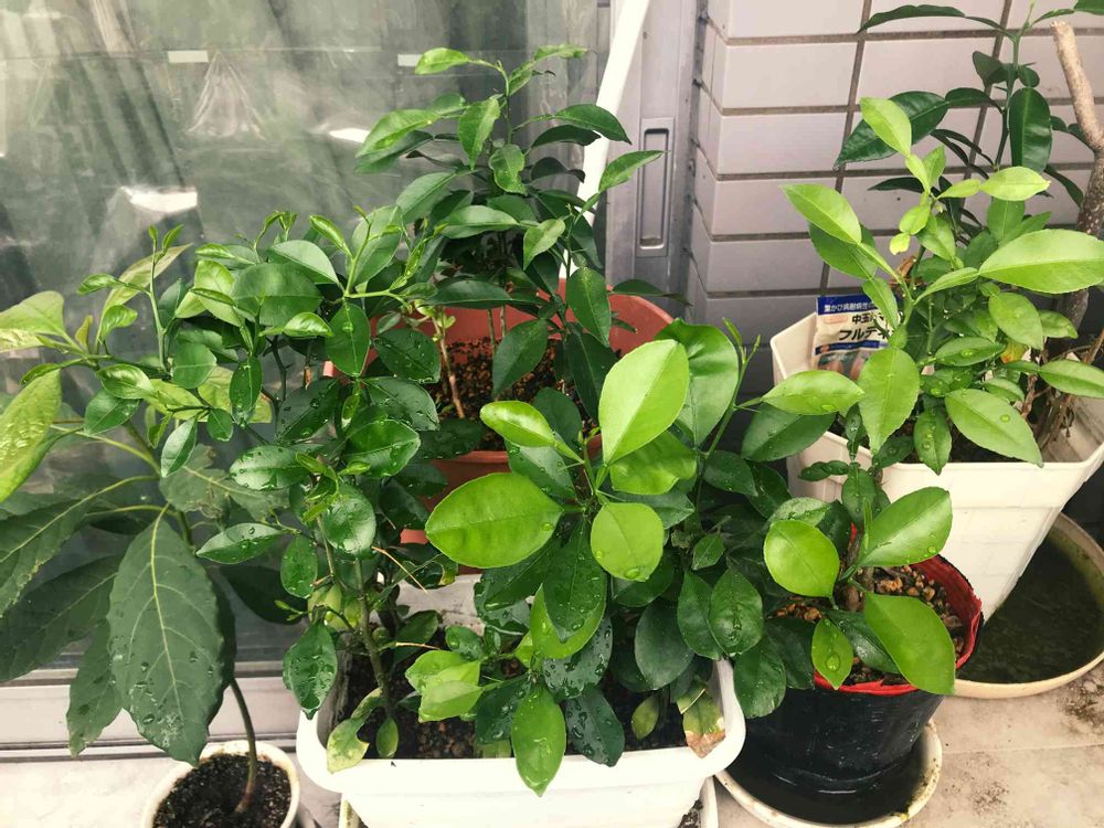 4/29〜5/25迄の1ヶ月間で、アゲハ幼虫に葉っぱを食べ尽くされ棒のようになった柑橘たち、みんな完全復活❗️