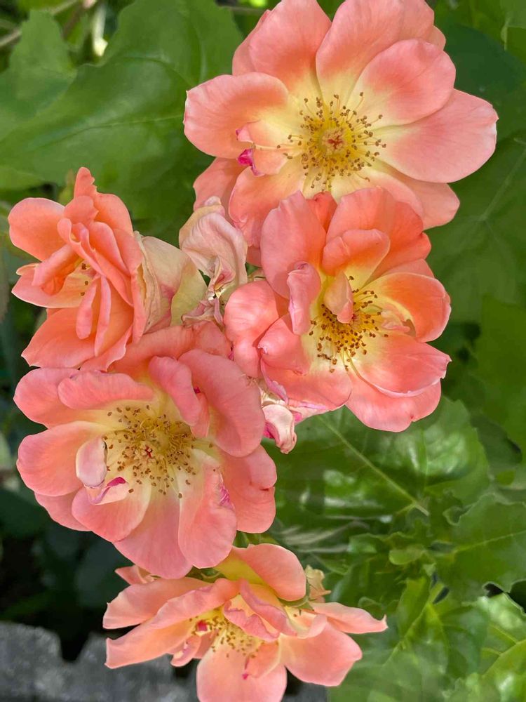 サーモンピンクで中心が優しいイエロー可愛らしい雰囲気の薔薇さんですね🌹