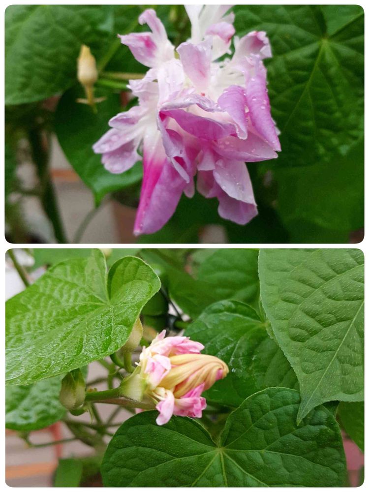 変わり咲き朝顔🌸何年か前にお友達に頂き、毎年、種蒔きやこぼれ種でも咲いてくれます😊