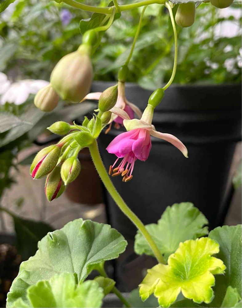 そんな中、頑張って咲いてくれたフクシアと咲きそうなゼラニウム カリオペ。