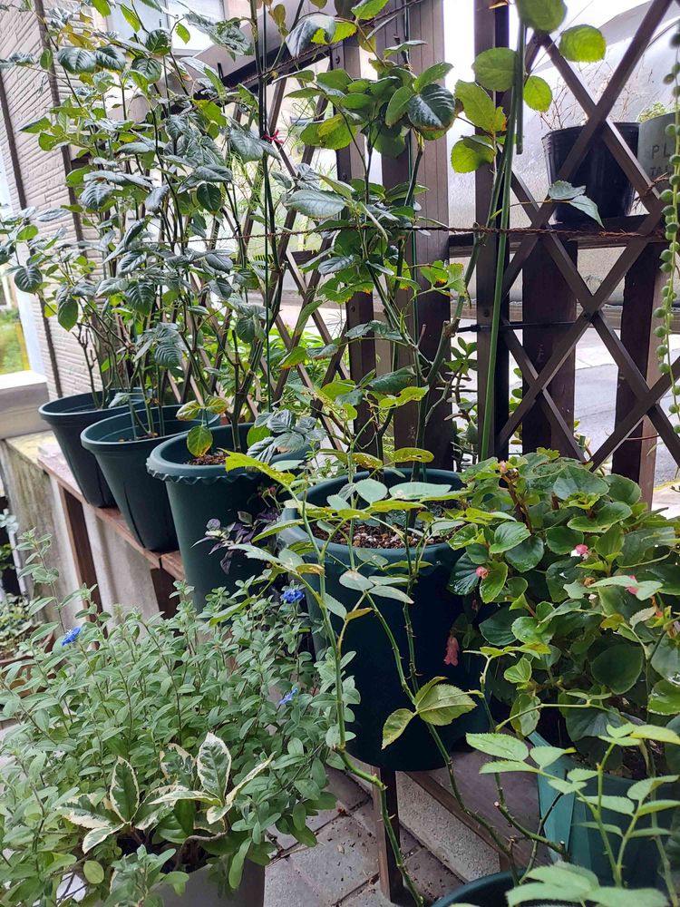 更に、こんな風に、鉢を並べたので、もし、荷物とかに当たり薔薇鉢植えが落ちてしまったら😫😰? 私は当然文句を誰にも言えません🤐! 自業自得、自己責任、はい💦