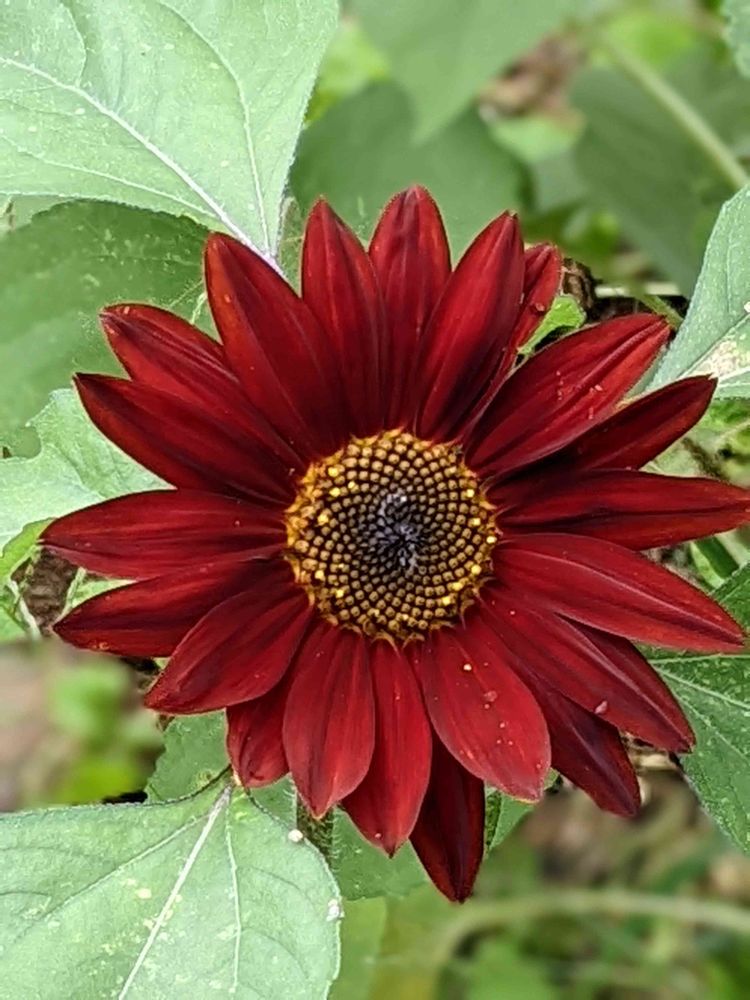 近所のひまわり畑で咲き始めたエンジ色の🌻🌻🌻