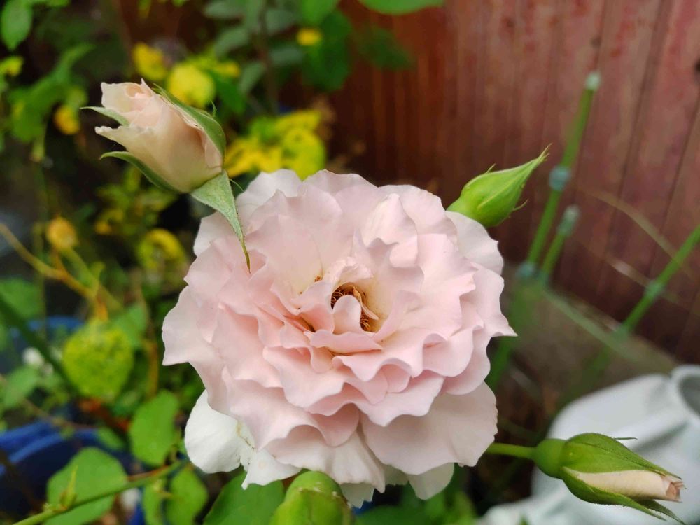 ふりふりの薄ピンクの薔薇、おとなしげな可愛い花