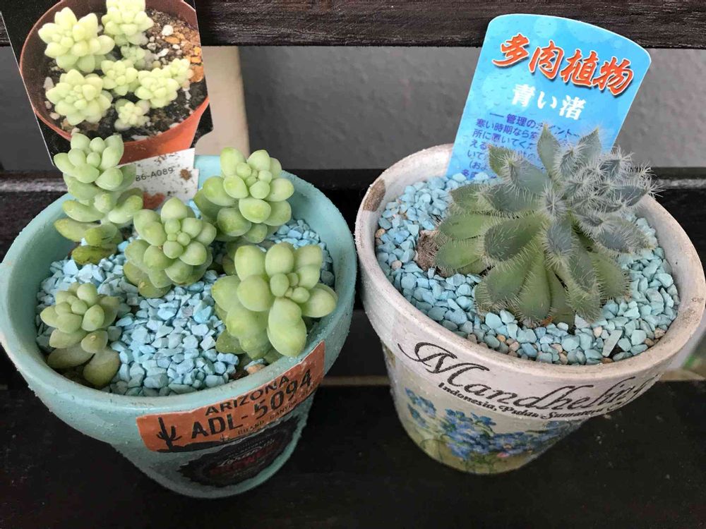 おひとり様鉢だとちょっぴり寂しくて、カラーストーン敷いてみたら可愛いくなりました😉💕