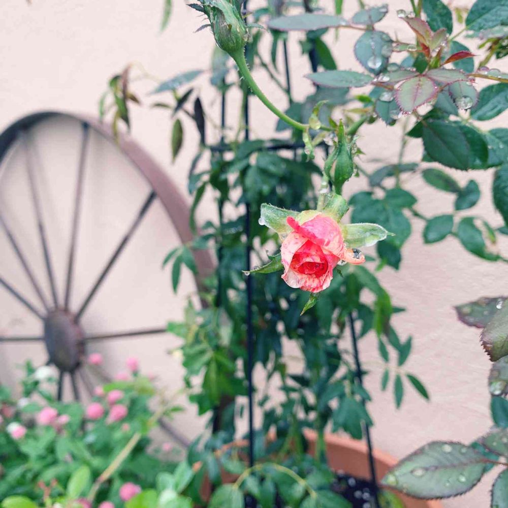 たまたま今日一輪だけ咲きそうなバラがありました。