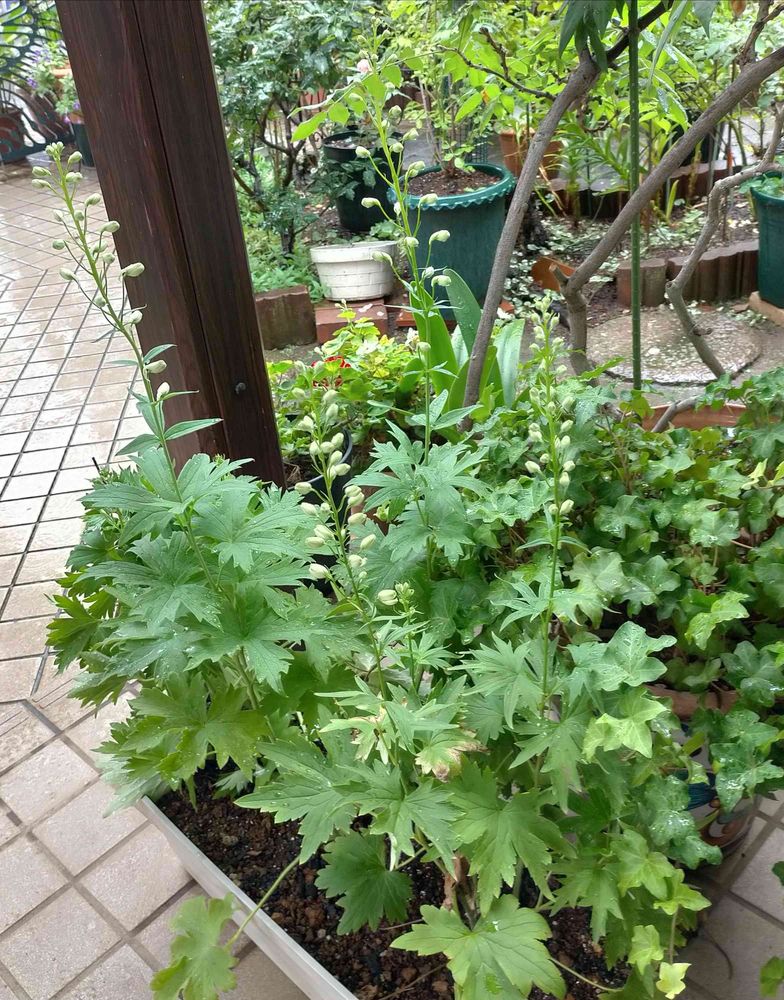 デルフィニウムに二番花らしき蕾が上がっています。これ、今頃開花するので合っているのかしら?💦💦💦