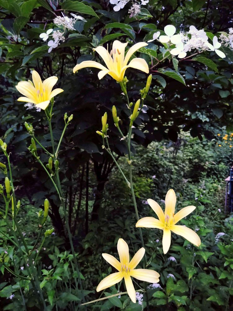 夏の夕暮れに、スーッとのびた花茎に綺麗なレモンイエローの花が咲き翌日にはしぼみます。