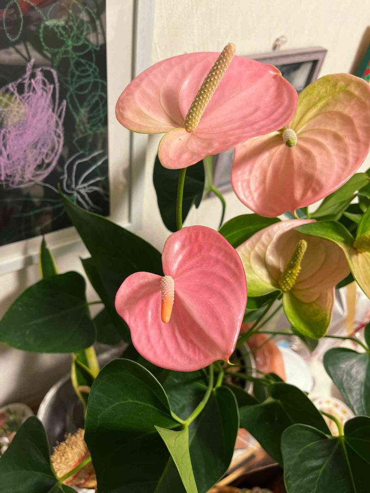 ピンクのアンスリウム次々と咲きあがってきます(๑›‿‹๑)