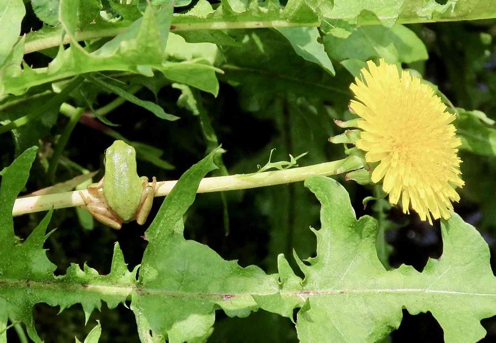 ちっちゃい🐸とタンポポは嬉しいコラボです❣