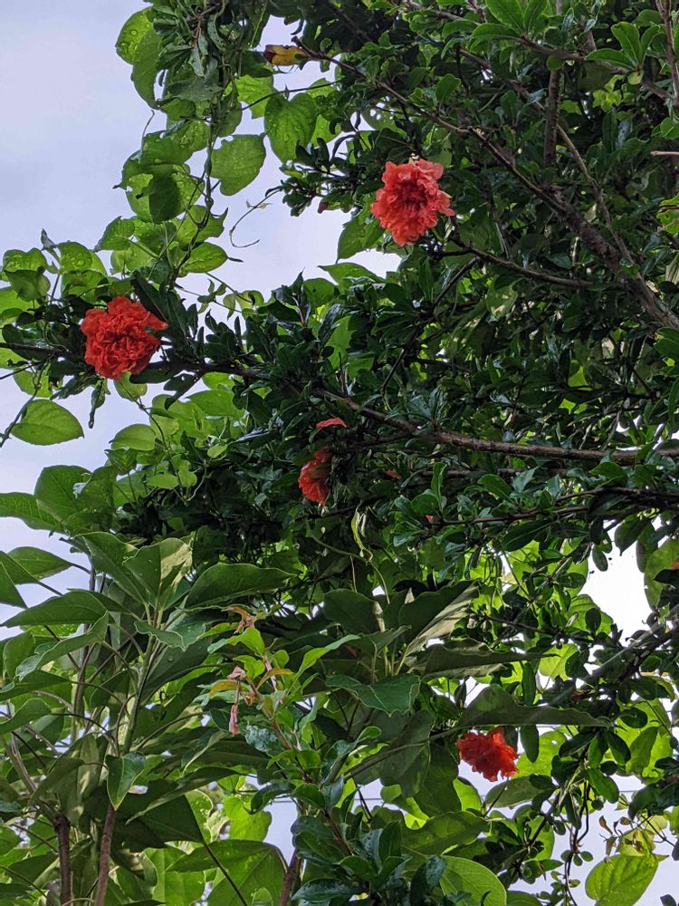 八重咲きの、ザクロ。綺麗に咲いてくれましたが、今年は少し伐採しないと、🤔🙄😱🌳🌲