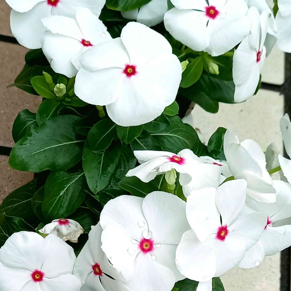 真っ白に、真ん中ガ赤いこのニチニチソウが、大好きです。毎年買って、育てていました。