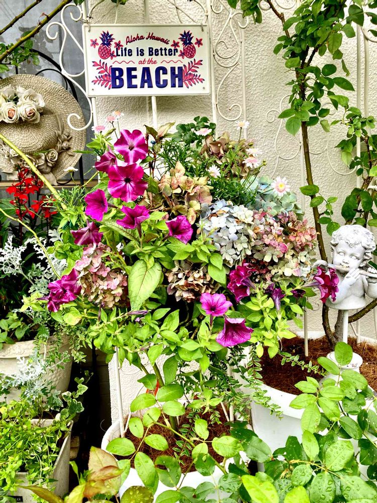 White Roseさんの小さな庭,シロタエギク,ペチュニアの投稿画像